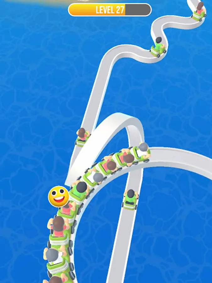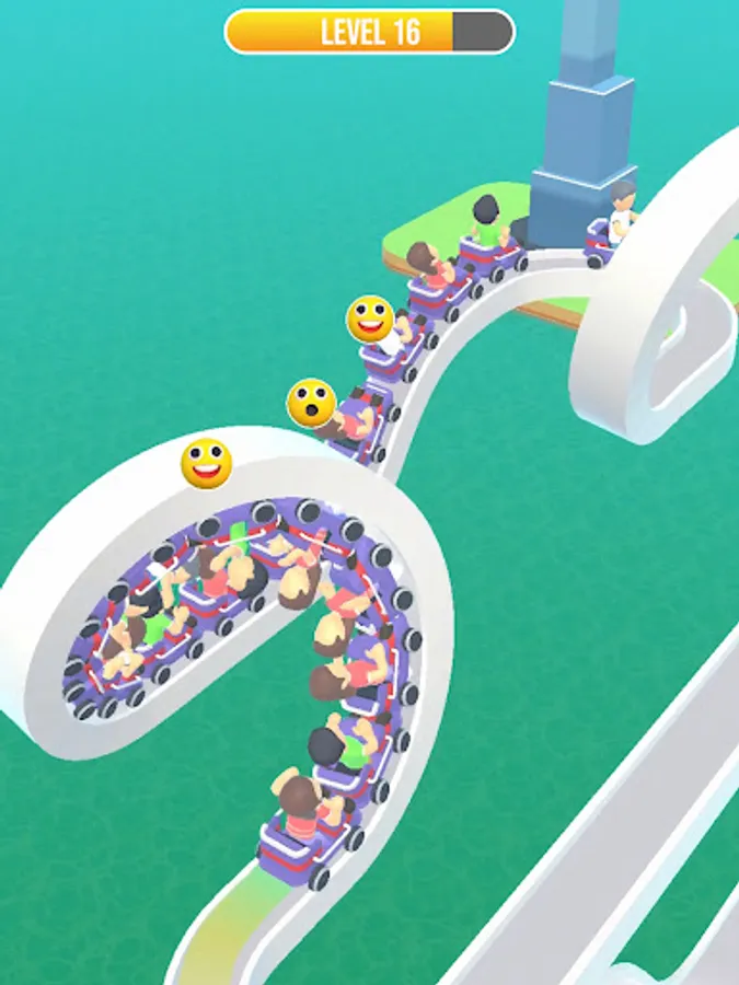 - Collect coins, keys and treasure boxes to unlock new roller coaster carts