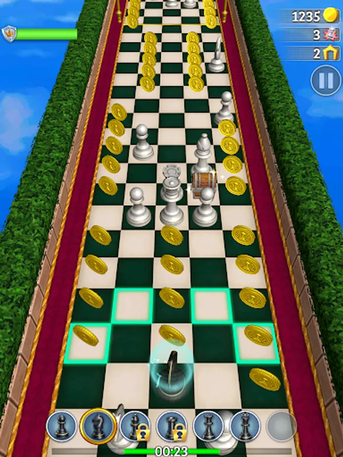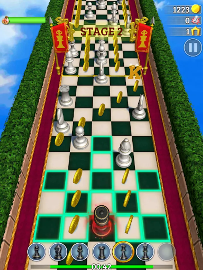 ChessFinity is a totally new spin on chess. While adapting the rules from the most famous strategy game of all times, ChessFinity adds the thrill of an endless runner. We’ve taken the traditional chessboard and transformed it into a never-ending road to victory. You control one piece from the roster at a time, but you can always swap - from knight to king, from bishop to rook, whatever the situation requires. Try to survive as long as you can and score as many points as possible.