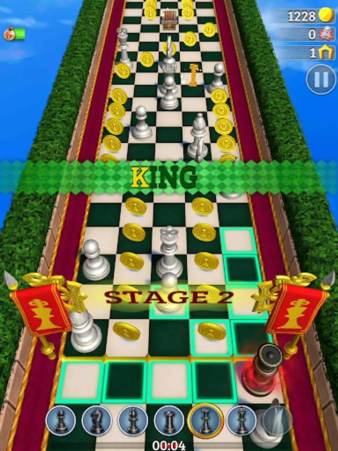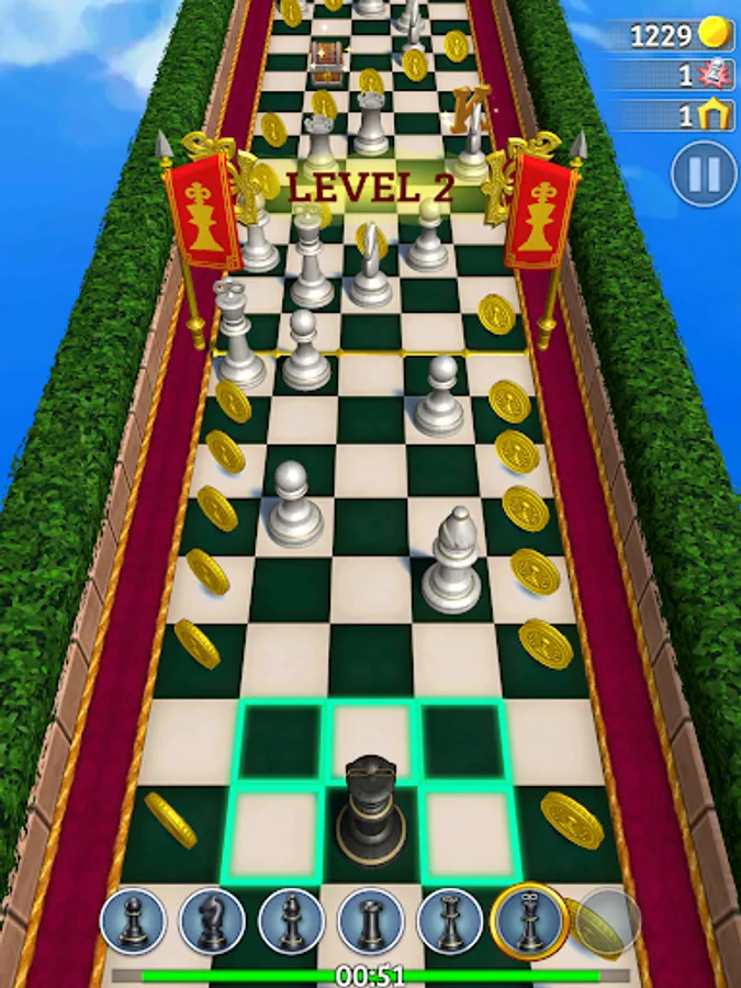 To advance further along the endless road, you have to take all pieces that are sent your way – every piece taken will give you more time and a queen is worth more than a pawn. Analyze your options quickly and then consider those of your opponent – just like chess. But the clock keeps ticking, you have to react fast to keep moving and to beat the high score – as you are competing with players all over the world for the top rank.