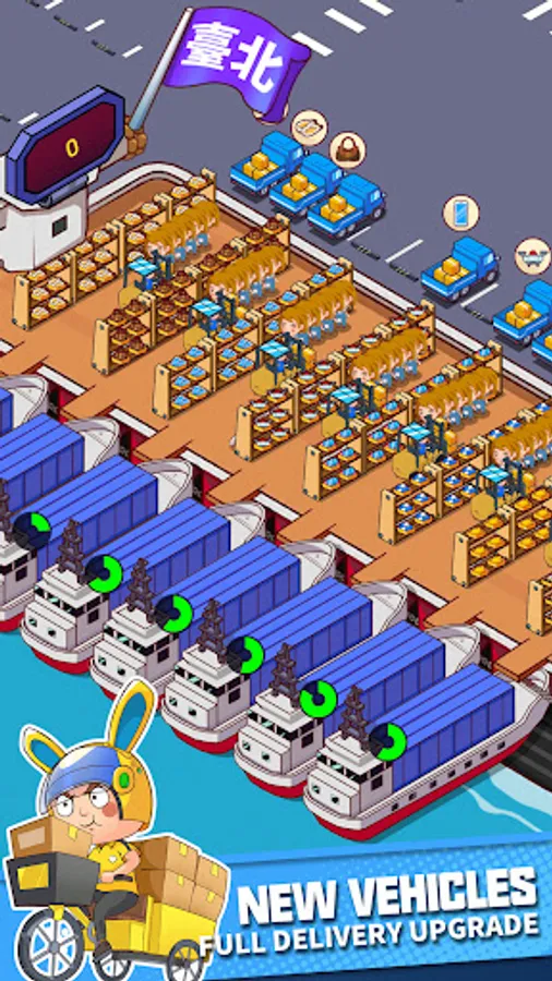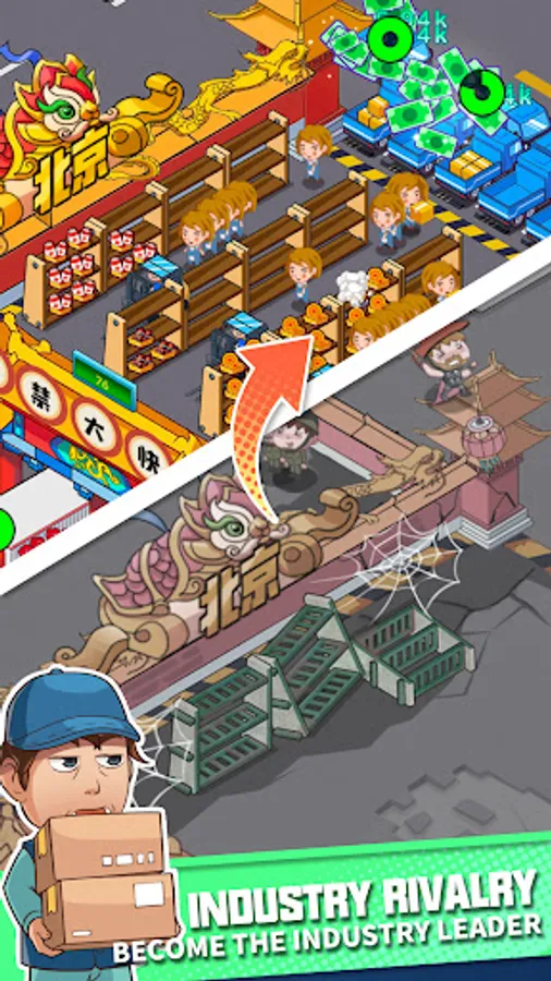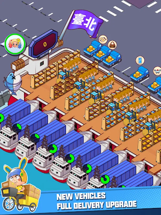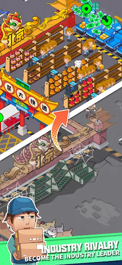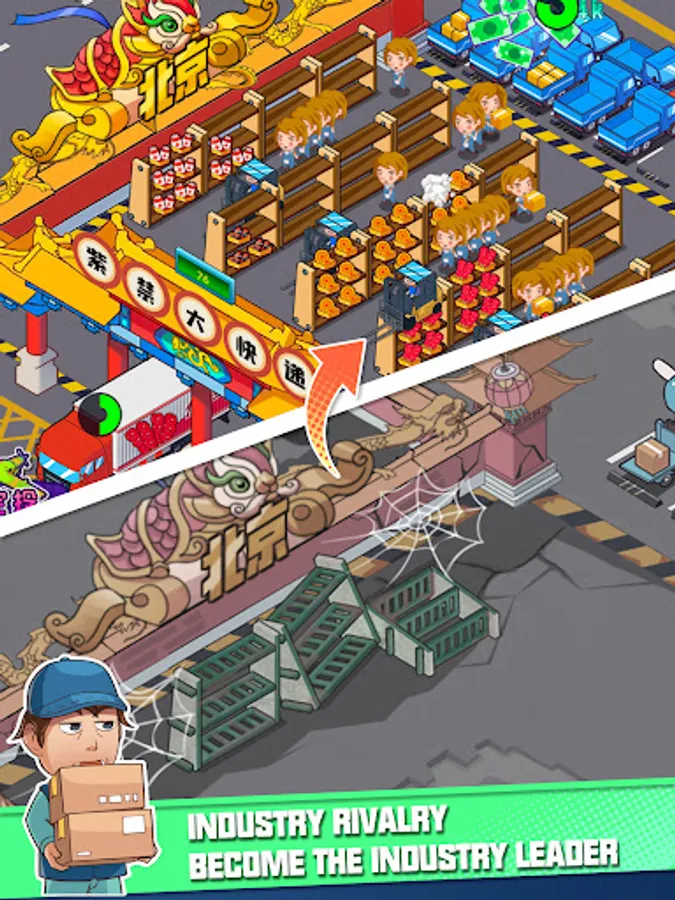 Build a shipping center to accept and sort packages from all over the country, and then hire a few couriers to deliver the packages to their destinations. To turn a profit faster, you must develop more sectors and hire professional shopkeepers to improve the management of couriers and increase shipping efficiency.