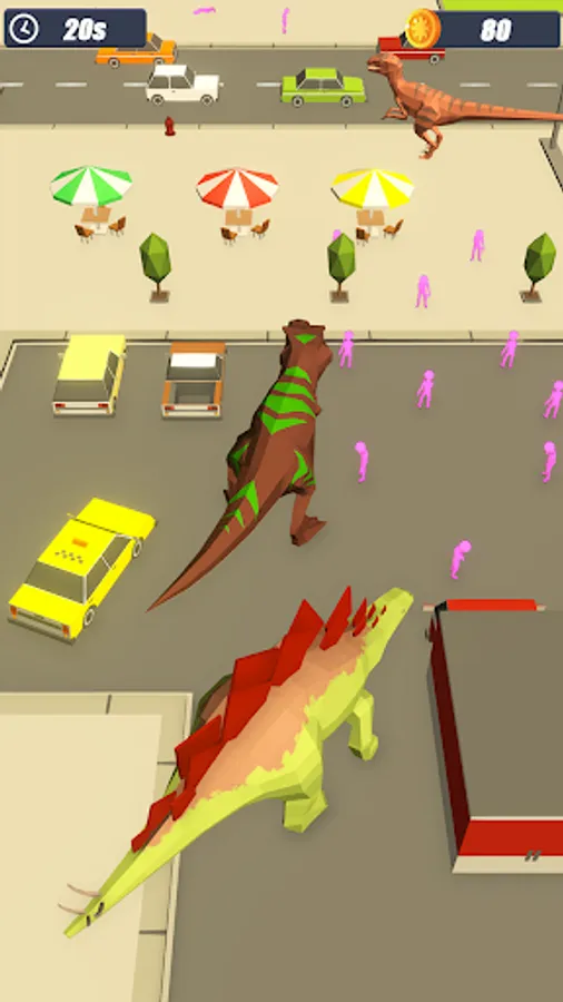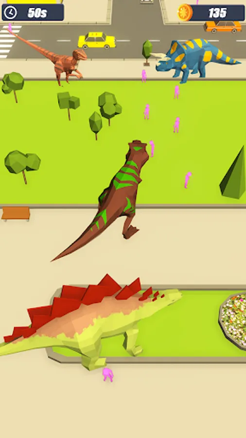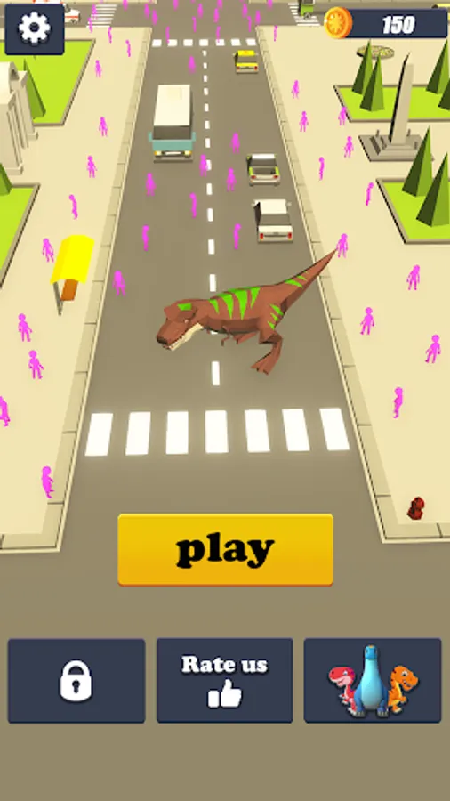 There will be so many little dinosaurs you have to eat small dinosaur or merge them to form dinosaur fusion so that your dinosaur become large and smash everything in the city . Dino rampage mania is jurassic survival game in which big monster dinosaurs will eat small dinosaurs and become jurassic island king .Dinosaur puzzle game having civilians and city items that smashed by angry dinosaur and getting high level day by day . In this smash city monster game there will be opponents destroying city societies and getting big , you have to face tough opponents .