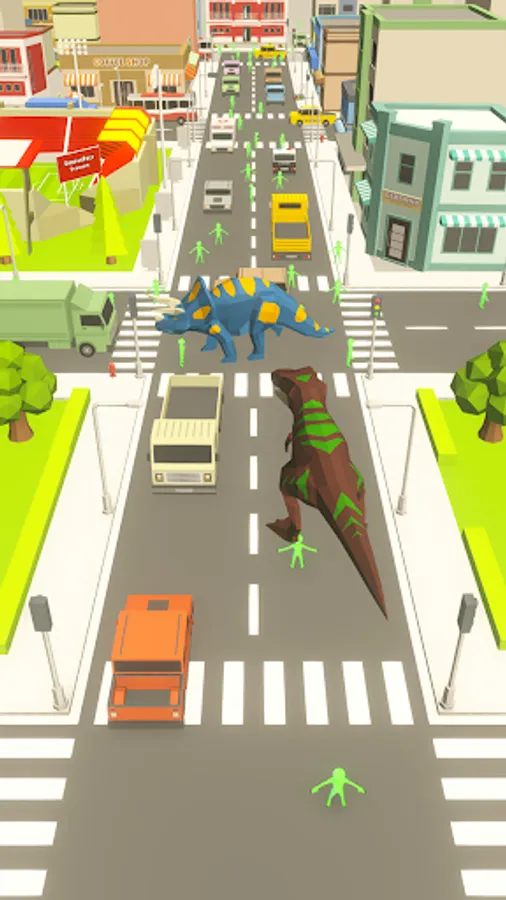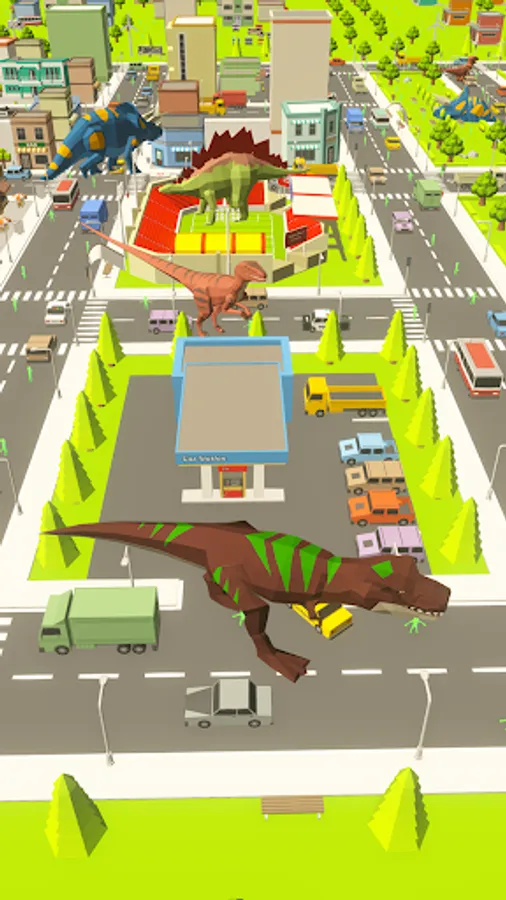 You are going to play next level dino game in which your dino will smash everything in the city . You have played many city rampage games , but this dino game in which dinosaur will do rampage every where . You have to prepare yourself to control monster dinosaur and merge dinosaur into big dino monster and eat everything to grow up and fight against other wild dinosaur that are sign of danger for civilian in this dino game city .
