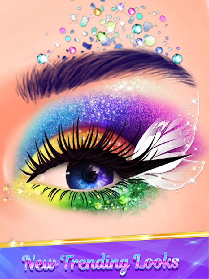 Apply gorgeous eye makeup in your eye parlor and paint your eyelashes and eyeshadow with unique and cool colors of eye makeup game. Select your eyeliners and draw some cute unicorn, butterflies, rainbow and so many cute stickers. Sparkly acrylic eye makeup colors and themes are waiting for you. Add some sparkling eye art with your own creativity in freestyle mode and play this makeup girl game.