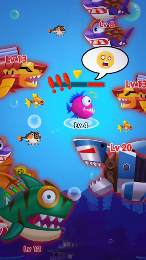 In this survival game you need to eat fish smaller than you to grow up, but at the same time don’t be eaten, be careful of fish larger than you and stronger creatures.