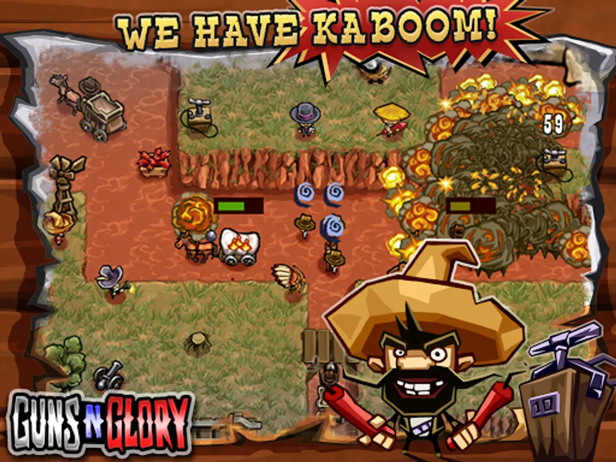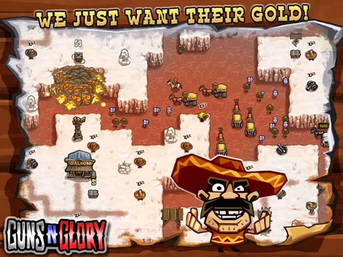 Who needs heroes when you can play the bad guys? Take up a smart, strategic position and lie in wait at the canyon to ambush settlers, stagecoaches and the gold train. Leave no witnesses! Play this innovative game if you’re bored of standard tower defense games or you’re simply looking for a great mobile game! Get Guns'n'Glory now!