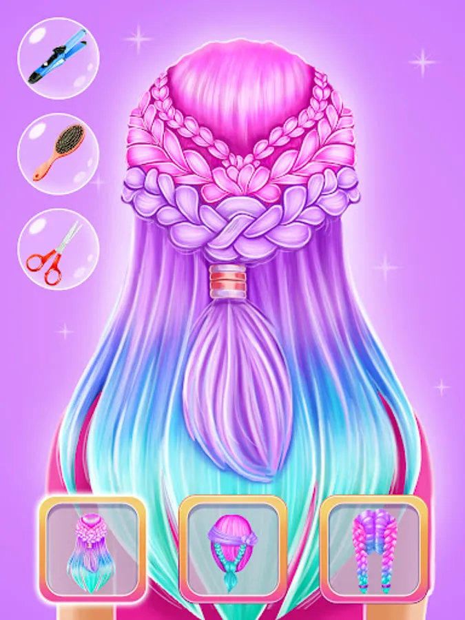Get ready to play a new hairstyle makeup game on your device now. You will definitely love to play this hair makeup and hair salon game with a variety of makeover hairstyles. If you get bored playing again and again the same stylist girls' makeup games and makeup dress up games get ready to play a new hair cutting barber game for girls with a few makeup touchups. You will never get bored while playing this salon game for girls. Be a fabulous hair salon artist and hairdresser and show one of the finest braided hairstyles.