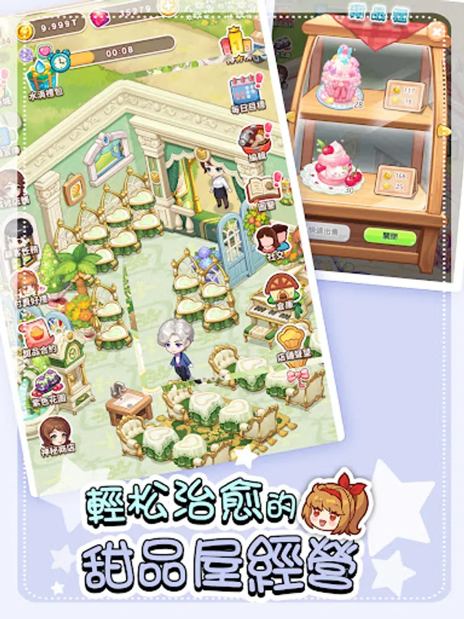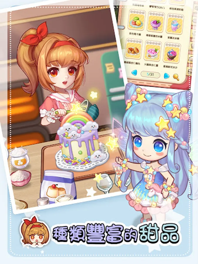 You can play with your friends in the game, share the out-of-print limited desserts you have recently obtained, share your store management experience, and mood diary. You can also join and create a guild, communicate and share with more dessert house owners, and experience the warm and real social world~