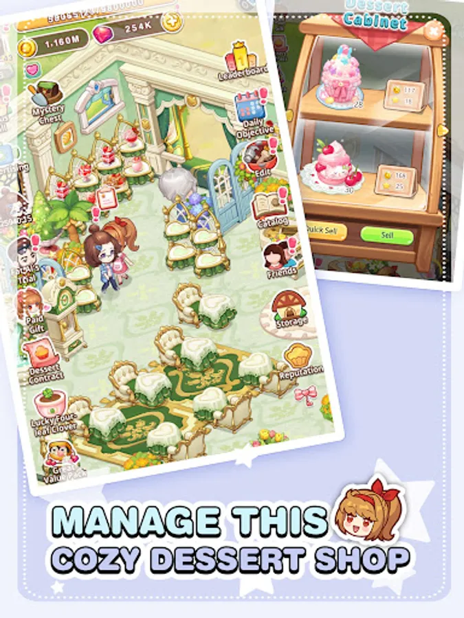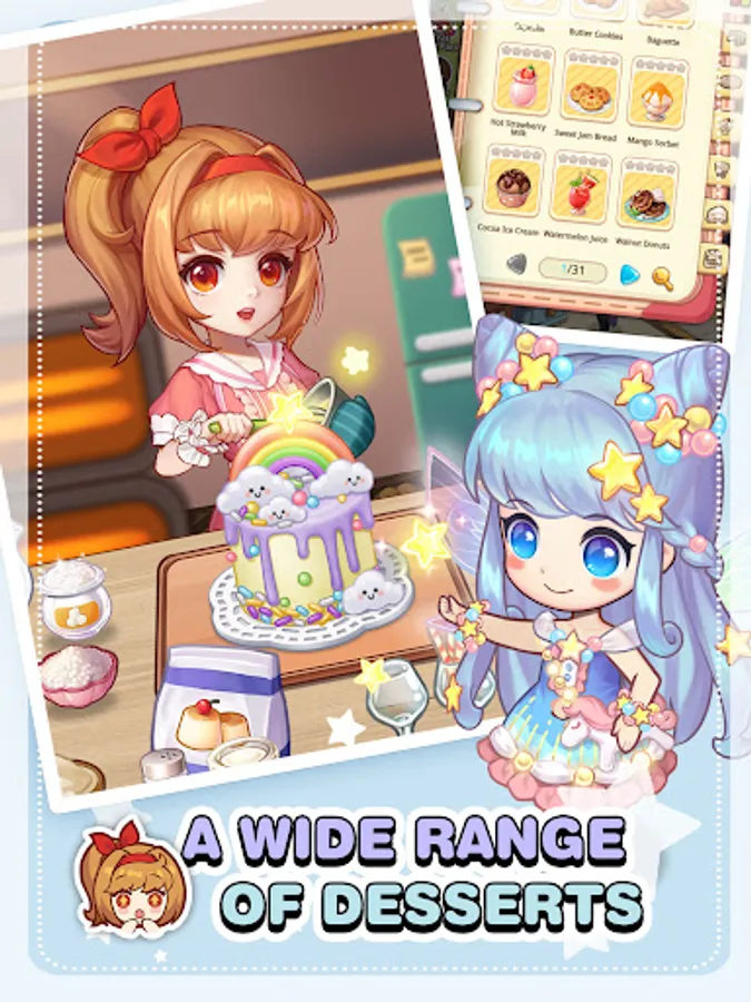 Happy Desserts is a cute simulation mobile game where you run your own dessert shop with the help of your butler! You will need to research recipes, grow ingredients, make food, and complete orders! Design your shop just the way you like it and create the best atmosphere for your customers! Here you'll get to experience the joy of running your own dessert shop, creating limited-edition desserts and growing your establishment into a celebrity shop! (o゚▽゚)