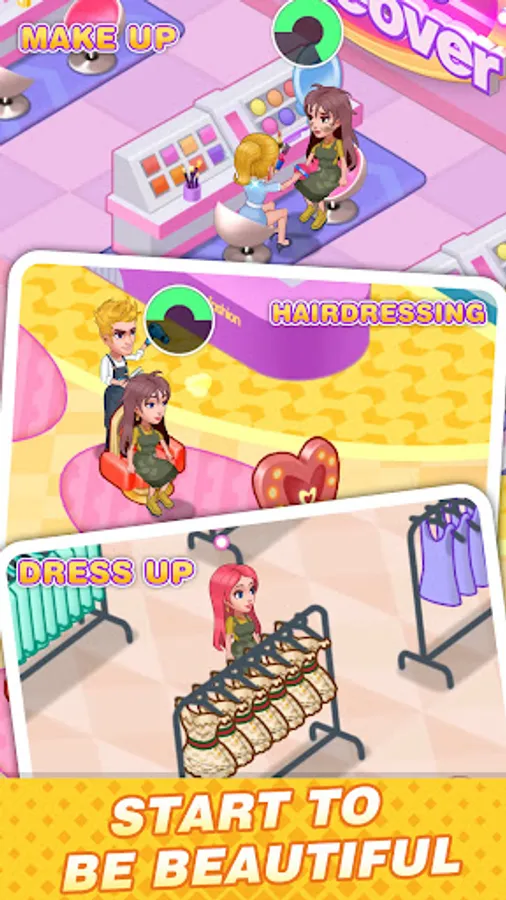 Provide your customers with a series of services such as hairdressing, beauty makeup, and clothing. The more you play, the more variety of products you can make!
