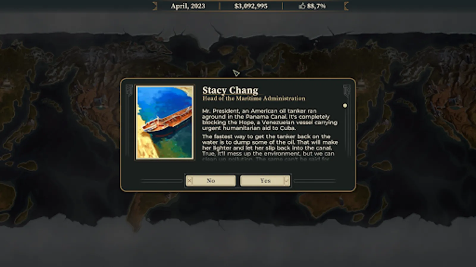 This Is the President is a story-driven management game. In the year 2020, you are elected to be the President of the United States of America. To escape justice for your past crimes as a shady multi-millionaire businessman, you need to ratify Amendment 28 which would grant lifetime immunity to any President.