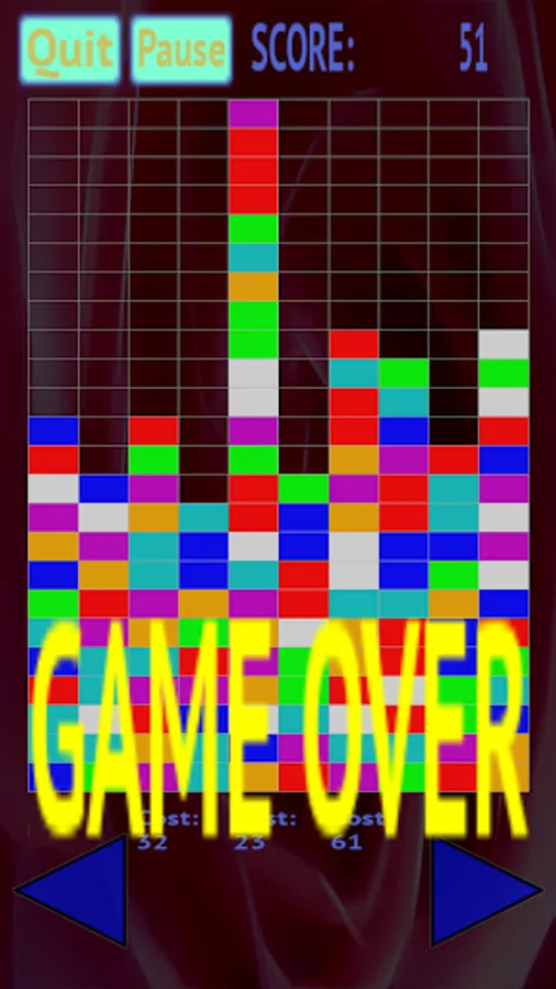 Increasing in difficulty over time, this game has you deal with falling bricks of various different colors by preventing them from reaching the top. Clear bricks that are of the same color and are next to each other in a group to score as many points as possible before they pile too high up, or else it's game over!