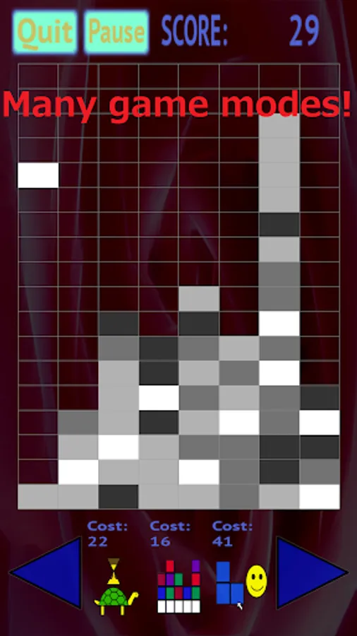 Using the arrow buttons, you can move the bricks on the ground, and you must tap on brick groups that you want to clear. There are 3 different game modes for you to try, each with its own set of rules!