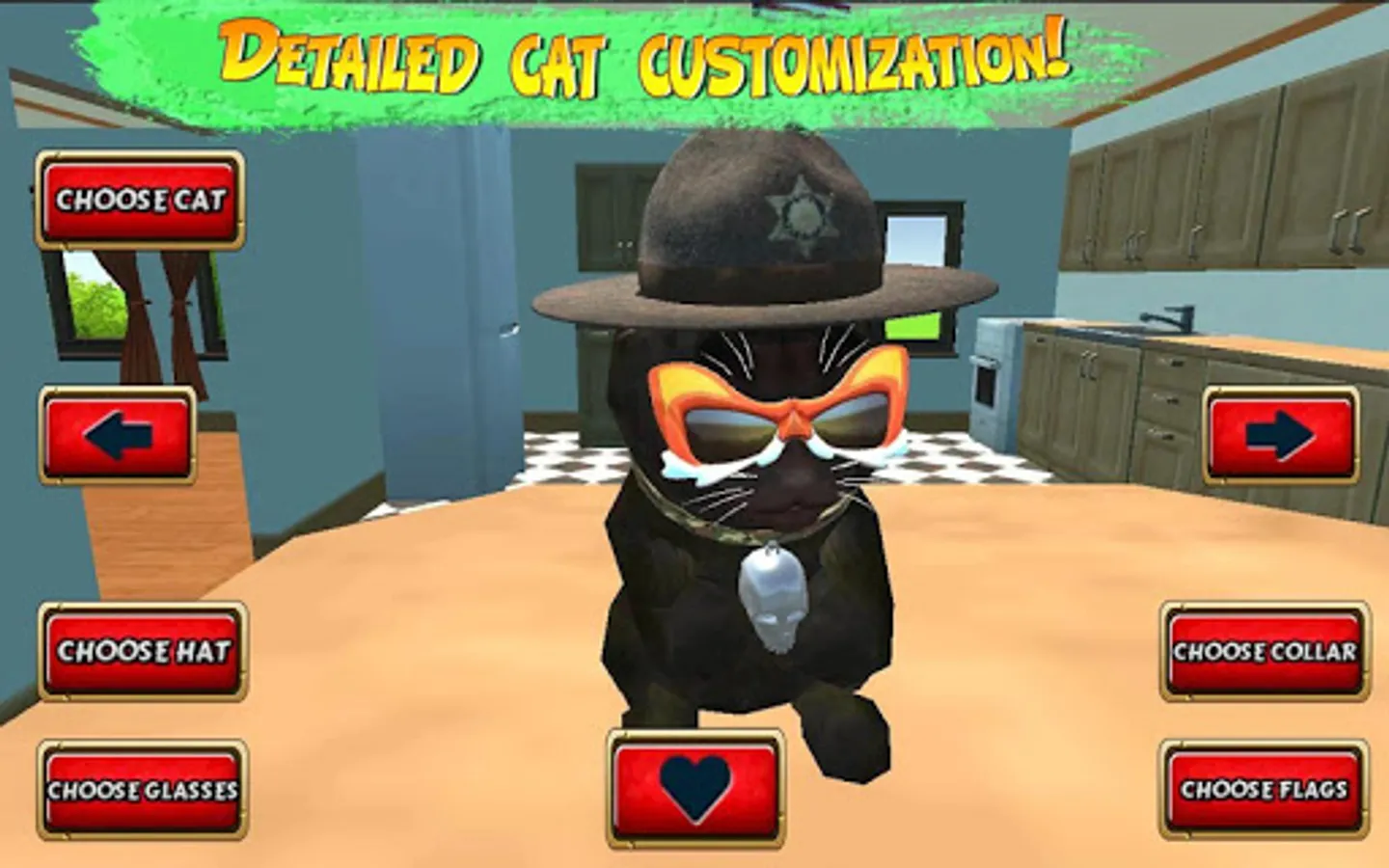 You can buy many different hats, necklaces, flags, suits, glasses to your kitty. There are several cat skins to pick.