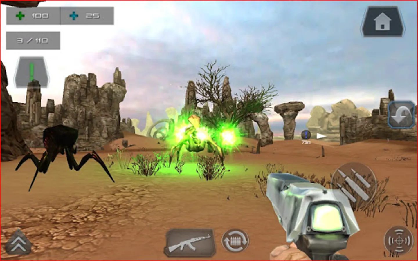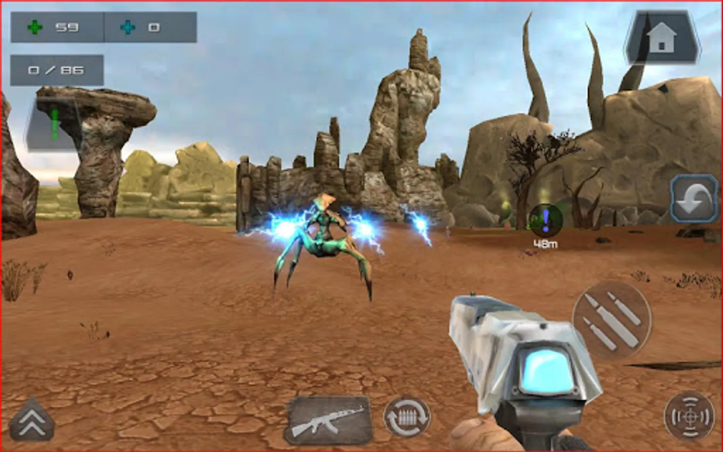 You will learn how to use old fashioned guns and modern laser machine guns in this unique FPS. Search for spacesuit, recharge your shields, collect ammo and fight from primitve creatures to very intelligent and developed outlanders. Then you realize that UFO has more developed laser guns and it is different races and civilazations. You need to make sure that invaders will not attack Earth before they get there. Stop this war before they will get closer to our star called Sun.