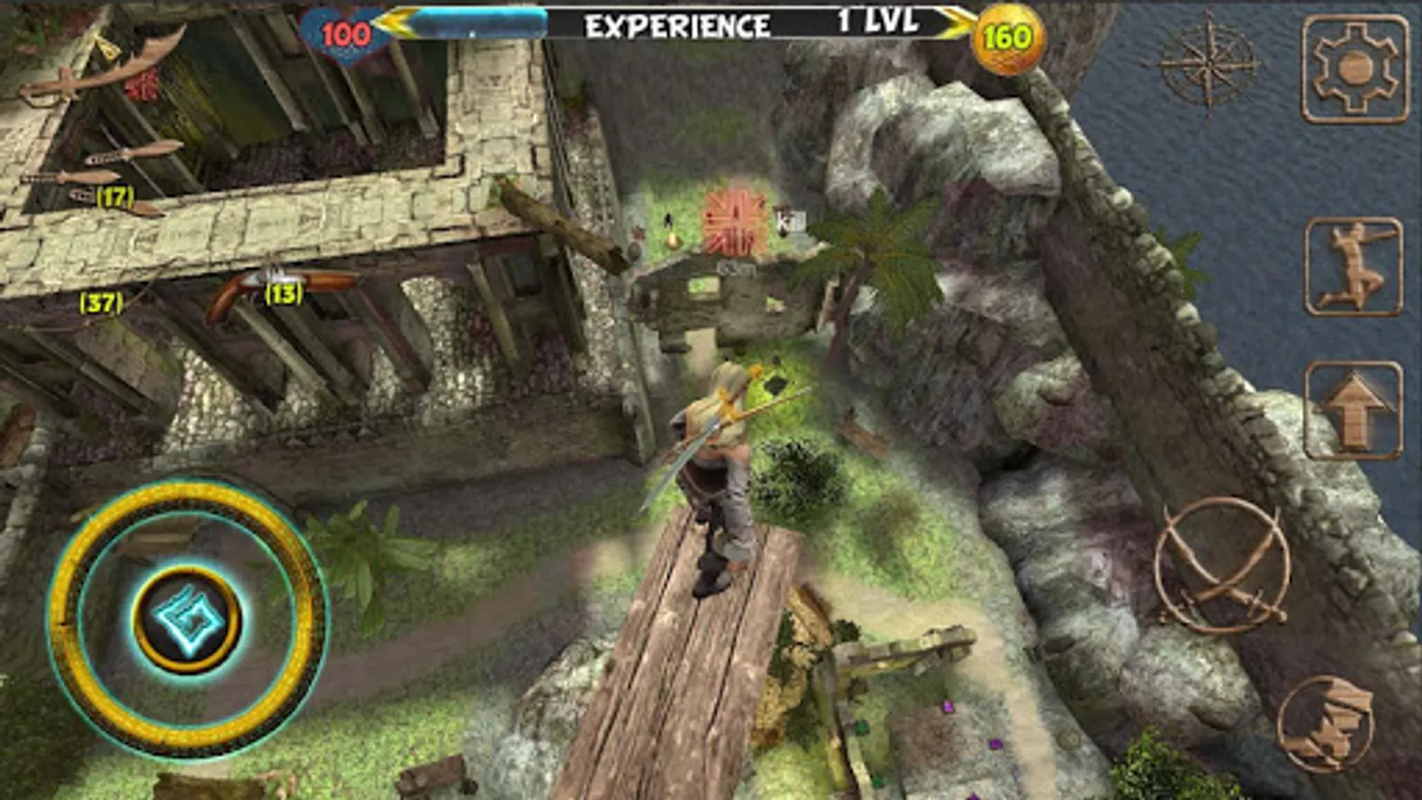 Aim is to collect all stars and climb where is the target showing on your compas to finish a mission. Your main mission is to go after murder of the real king of a all seas. By your journey you will deal with his army.