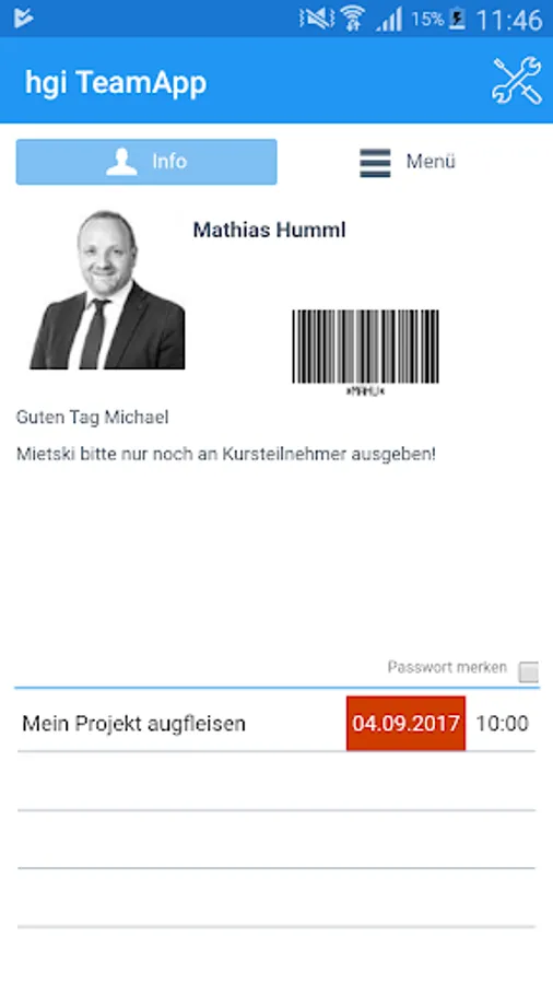 TeamApp of hgi system is easy to install on your phone or tablet. After logging in with your personal data you can access selected menu items your hgi system software.