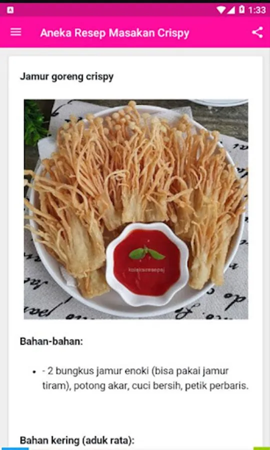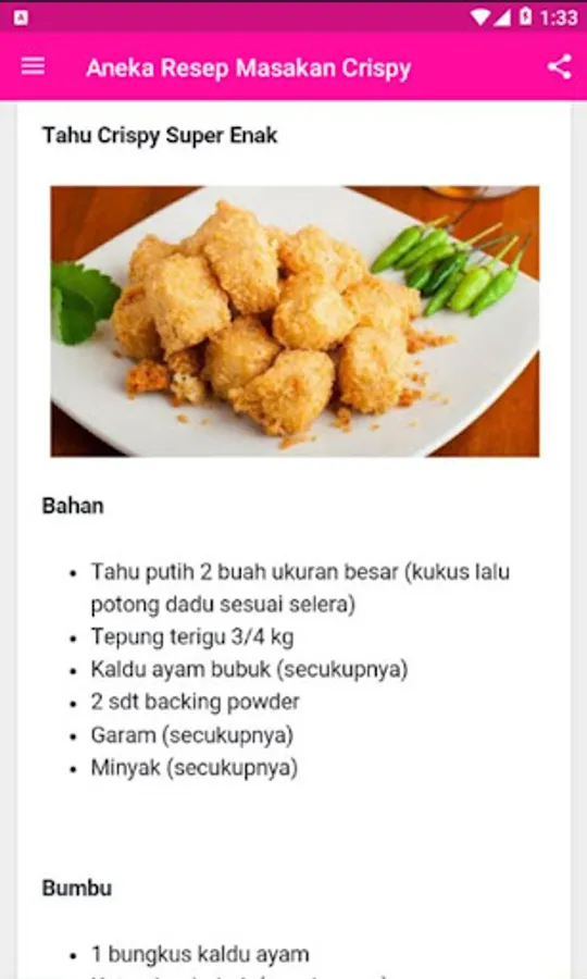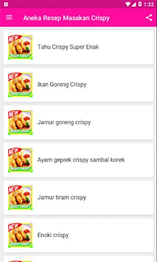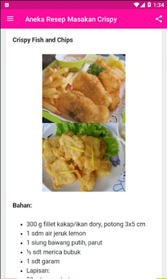 What are you waiting for ??? Come on install this Crispy Cooking Recipe Application. Don't forget to give suggestions and criticisms for further application development. Thank you