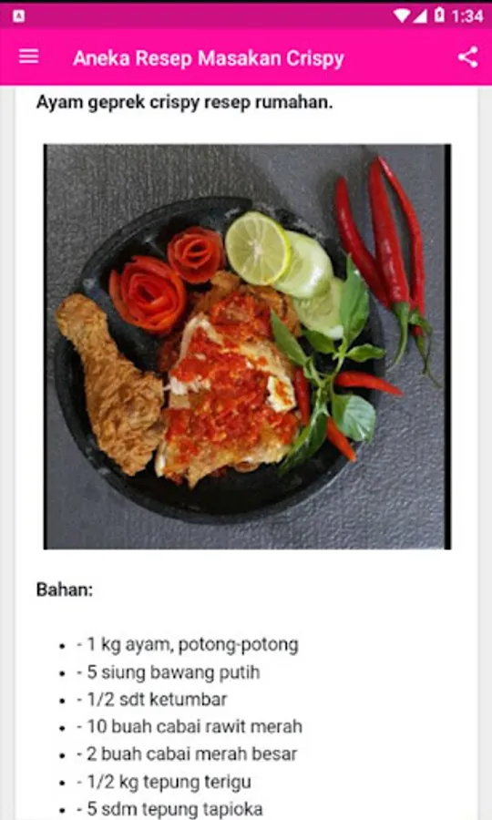 Want to try to cook Crispy Chicken, kfc-style crispy chicken, crispy fried chicken with sambal matah sauce, Savory Crispy Fried Chicken and others that are delicious for your family? Download the following applications for various recipes Crispy.