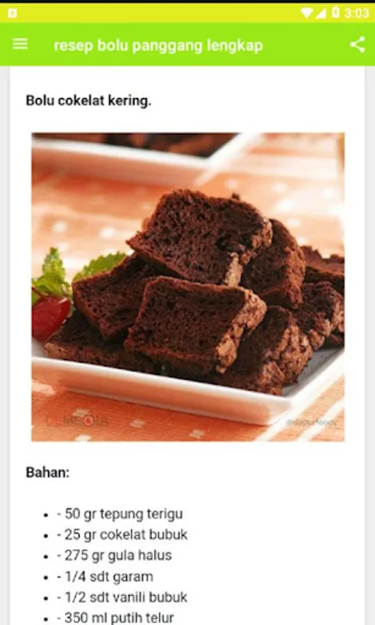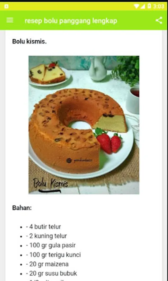 Free applications Cake Recipes Bolu, provides various kinds of sponge cake recipes menu from various variations. You can easily make sponge cakes according to the recipe that we have given in this application.