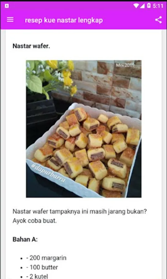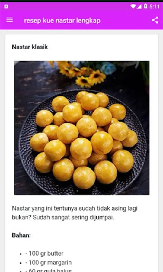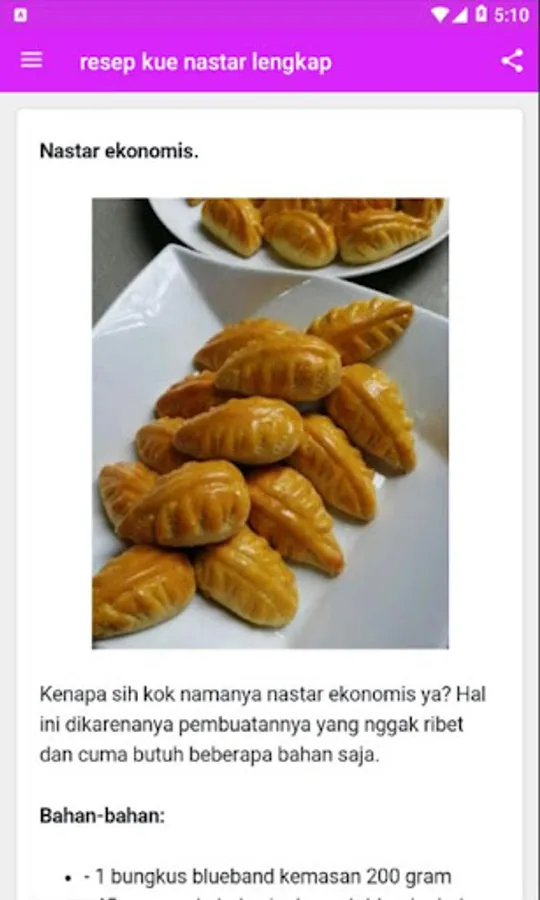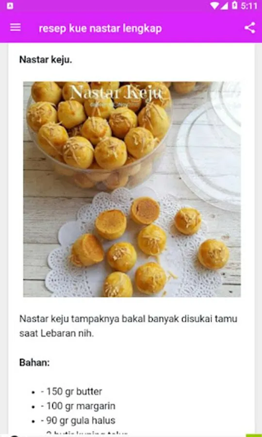 Various soft nastar cake recipes is an application that contains a collection of special nastar recipes for Eid, recitation, social gathering, and other important events. Nastar is one of the pastries that is popular in our society lately. Offering this cake when there is an event is certainly the right choice.