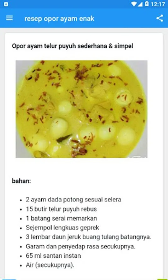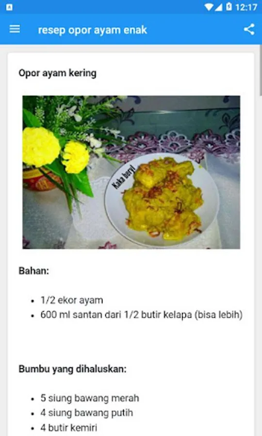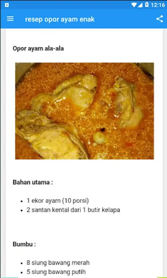 Download the application "Delicious Chicken Oport Recipe" - Various Recipes and How to Cook Special Chicken Opor For Families. In this application there are hundreds of recipes for making Chicken Opor with variations with clear and easy steps to follow and practice.