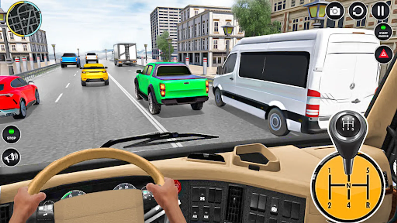 Fasten your seat belts. On the right side of your screen, bring the shift to the “D” position. Control your Truck by using break and acceleration buttons.