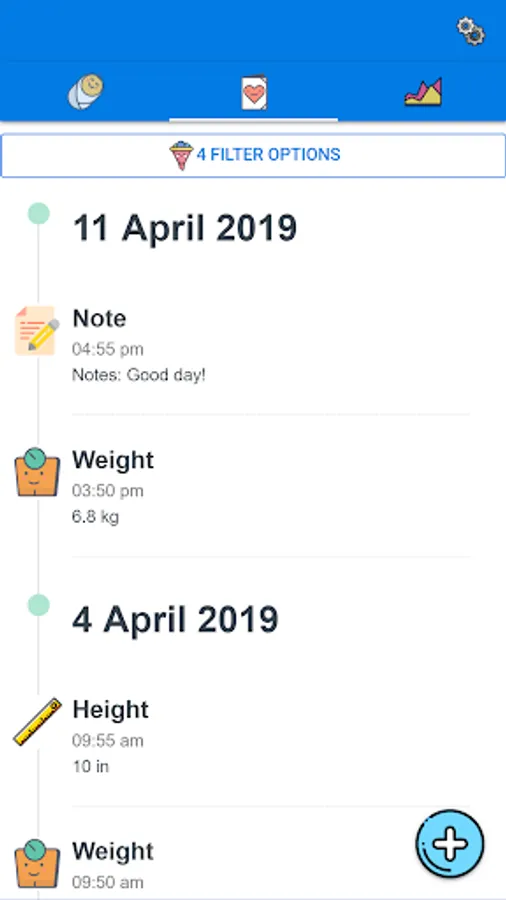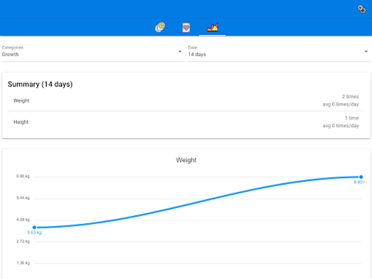 Baby Growth Tracker - Weight, Height, Head Log provides tracking, logging and statistics functionalities for the following newborn baby care items.