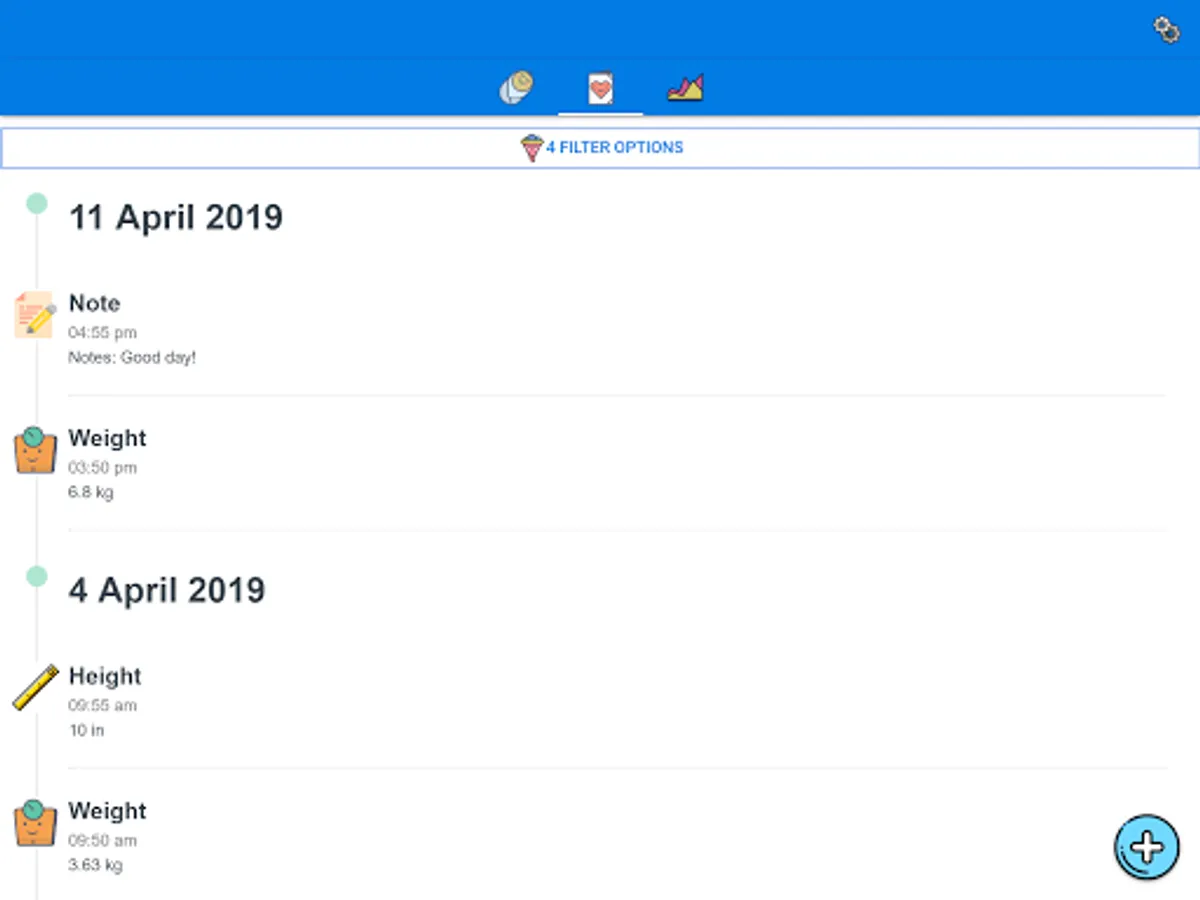 - Measure and enter baby’s weight, height and head circumference to see baby’s growth over weeks, months and even years