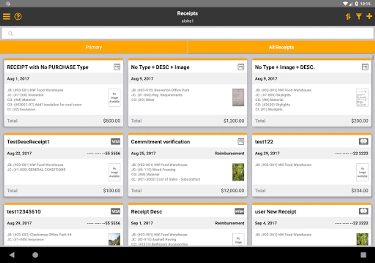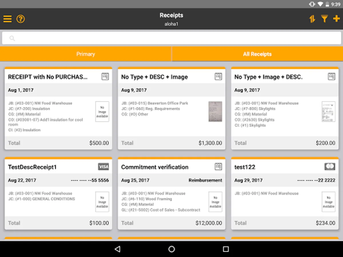 Your employees will be able to take photos of their receipts at the time of purchase. They can code them to jobs, cost codes, commitments, commitment items, categories or accounts. They also will be able to place a comment for the receipt if needed.
