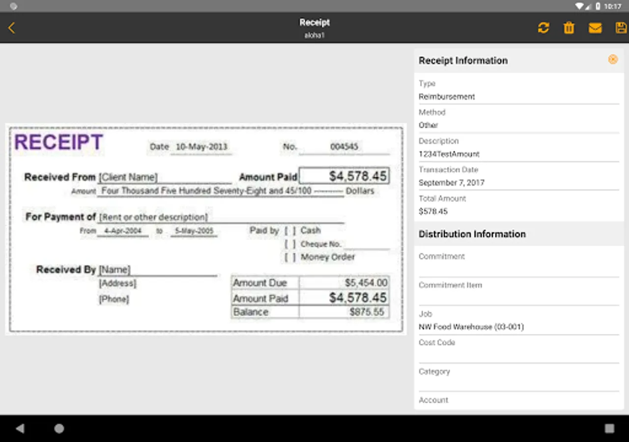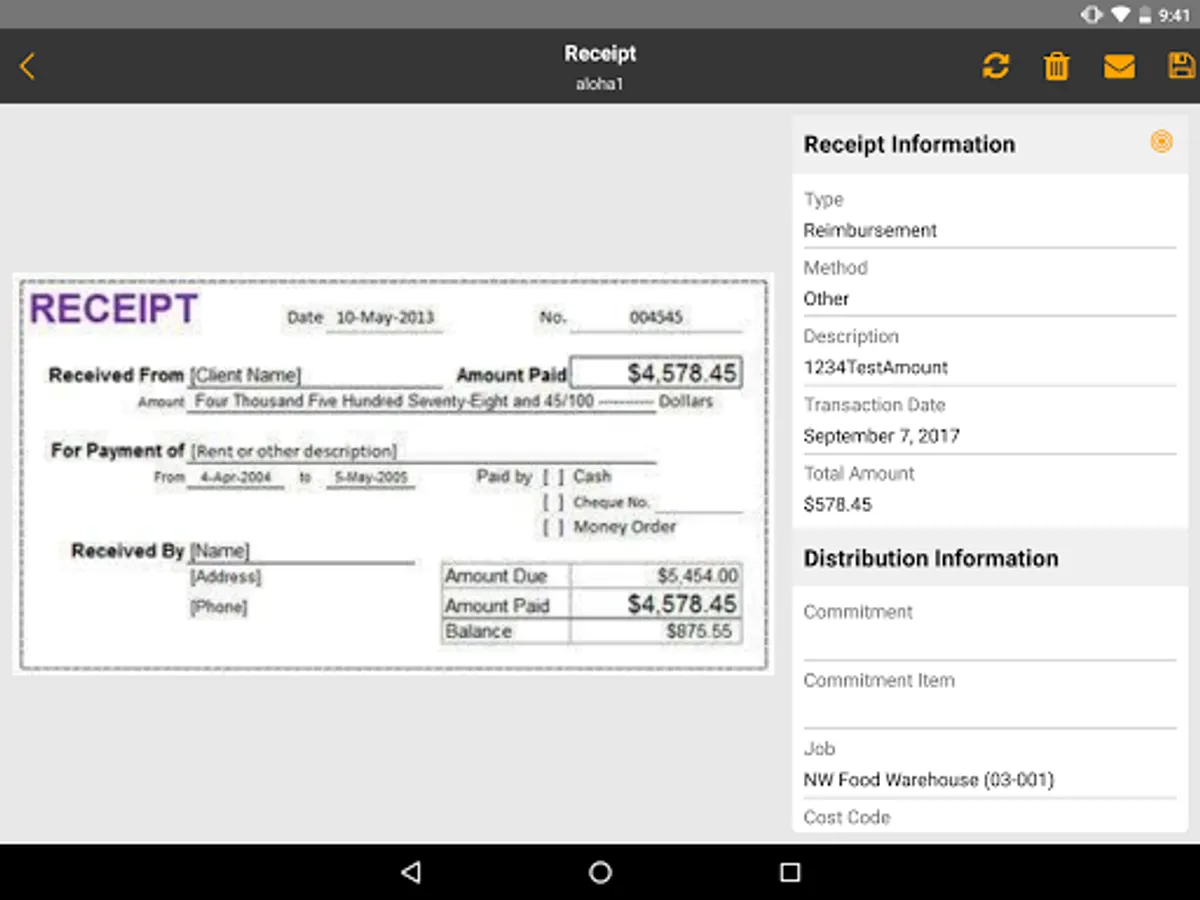 Easily code the receipt to a job, cost code, category, commitment, commitment item or account.