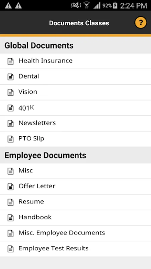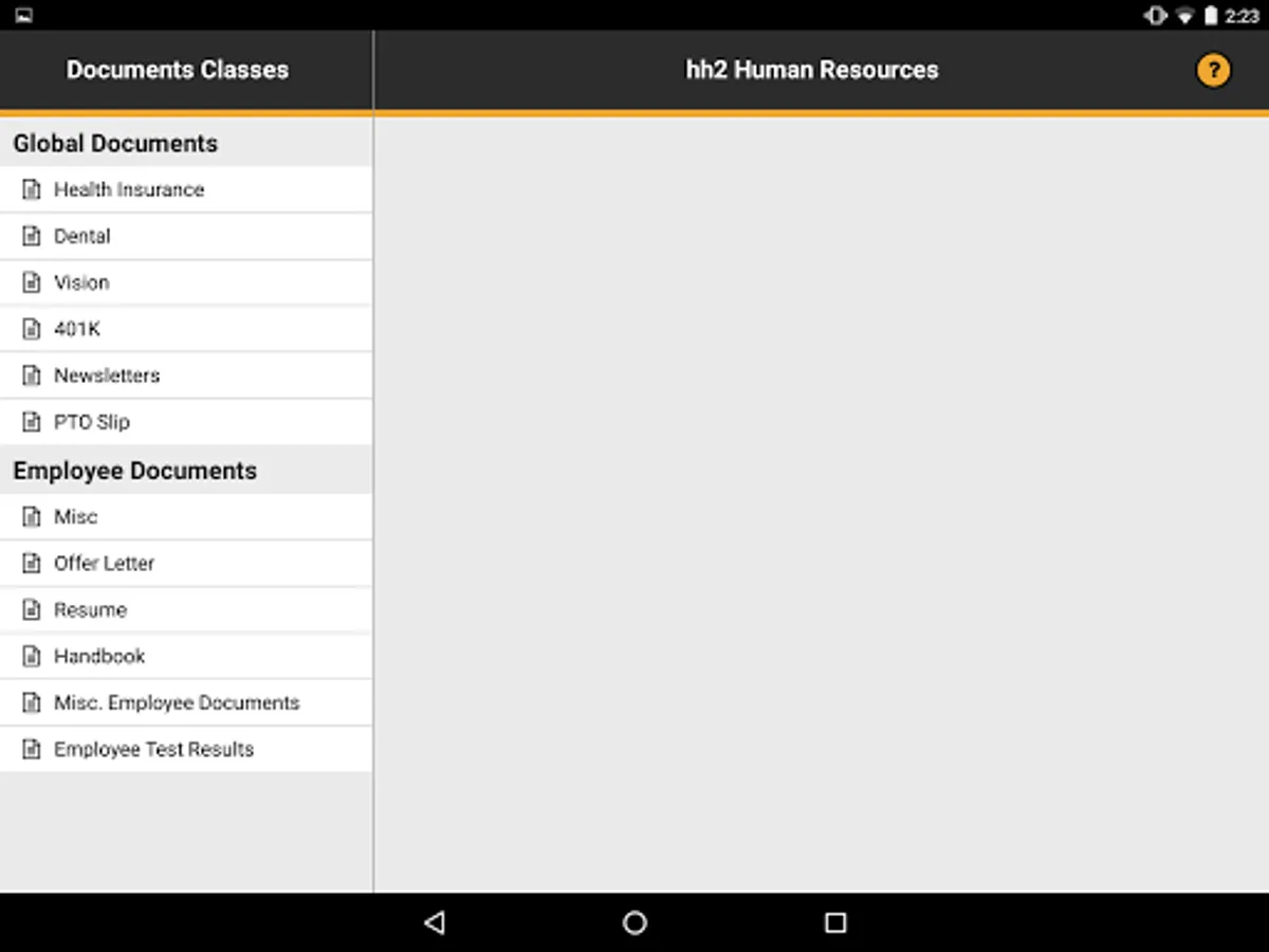 - Employee documents, such as employee handbook, enrollment forms, resume, etc...