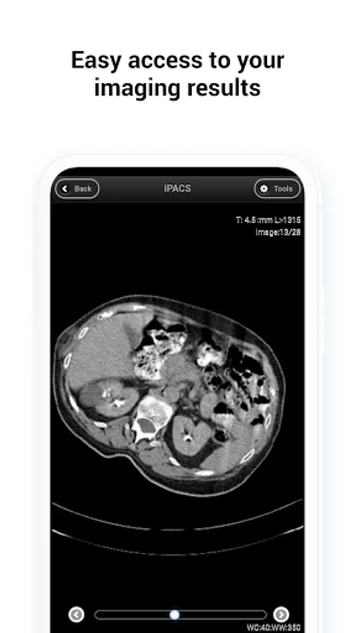 - Access to findings and images of imaging examinations (x-rays, axial, magnetic, ...)