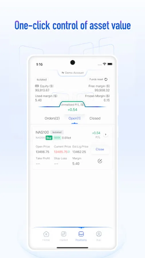. Stop-loss, take-profit, and additional margin features to manage orders effortlessly.