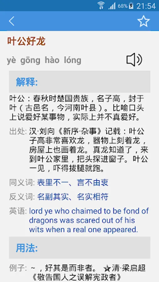 Idioms are the soul of Chinese culture, with a long history and profound meaning. This software contains more than 40,000 idioms and supports offline search. The idiom dictionary has a beautiful and concise interface and is easy to use. Everyone is welcome to use it.
