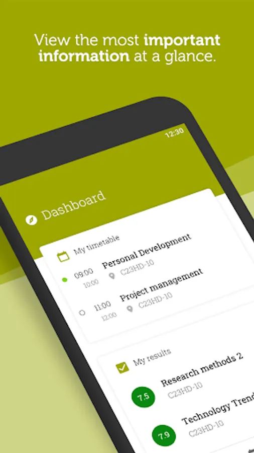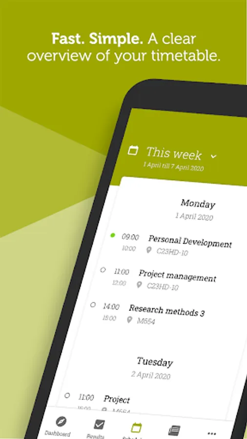 Checking your personal timetable, study results and the latest news of The Hague University of Applied Sciences has never been this easy! Three taps are needed to examine all the information you need.
