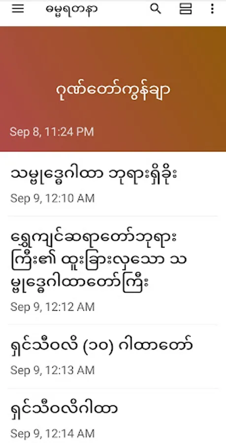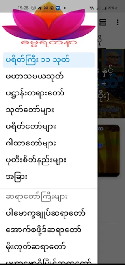 ဗုဒ္ဓဘာသာဝင်များအတွက် ပရိတ်၊ သုတ်၊ ဂါထာ၊ ပုတီးစိတ်နည်း နှင့် တရားတော်များစုစည်းထားပါသည်။