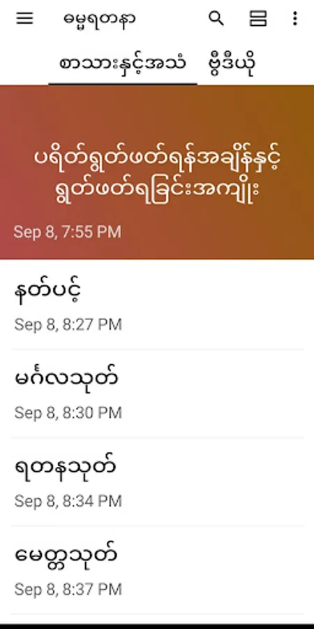 စာသား၊ အသံဖိုင်၊ ဗွီဒီယိုဖိုင်များဖြင့် စုစည်ထားပါသည်။