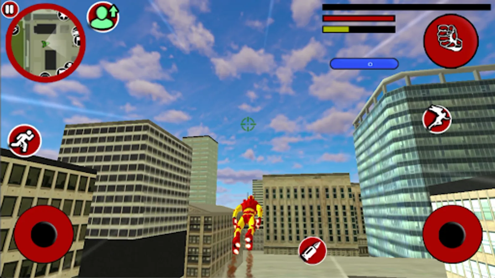 iron hero superhero fighting game comes with a smooth controls to give the real experince of flying with iron shoes and also simulate the movement of iron hero while you're flying in the air. You can shoot your enemies by guided misslles when you're floating in the air and lock on your enemies with high accuracy.