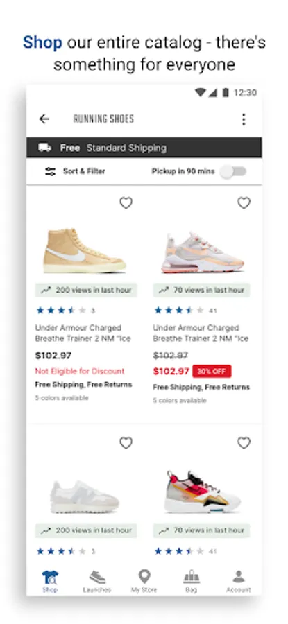 Our app features go beyond the footwear and fashion scenes, too. The Hibbett | City Gear app is an extension of Hibbett.com, making for a seamless shopping experience, whatever the device, wherever you go. Browse our full catalog of fan gear, fitness and sports equipment, cleats and accessories in addition to our extensive catalog of sports-style inspired shoes and clothing. Plus, sign up for our Rewards Program, earn Points for your in-app purchases, manage your launch alert notifications and receive promotional offer messaging all in one convenient place.