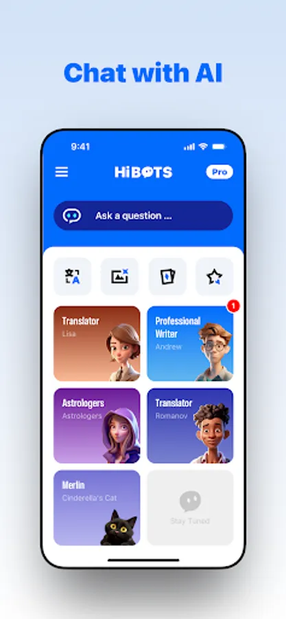 HiBots is a unique chatbot app that offers personalized character roles to assist you with a range of problems. Our app is powered by ChatGPT , which provides users with a variety of roles to solve problems in different fields, thereby increasing their productivity and efficiency.