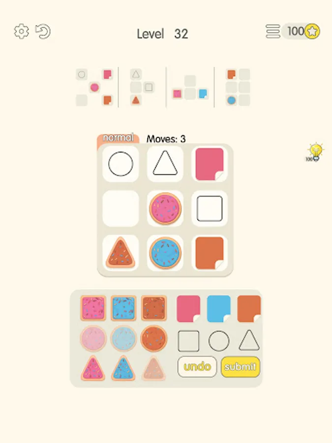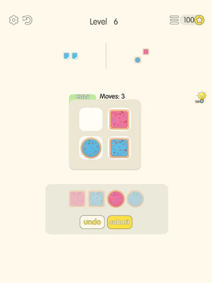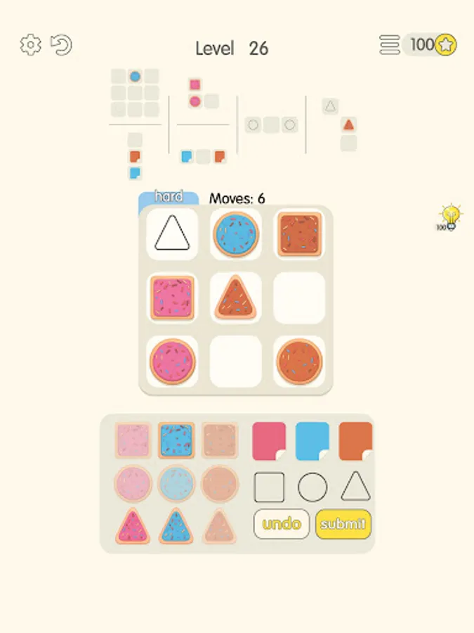 Using the clues, fill the tray with all cookie pieces in their correct positions. Similar to Sudoku, you must examine all clues on the challenge card before making a move.