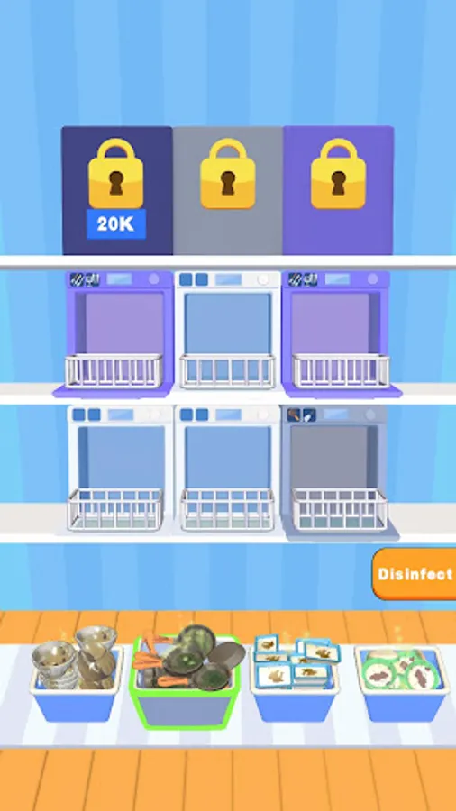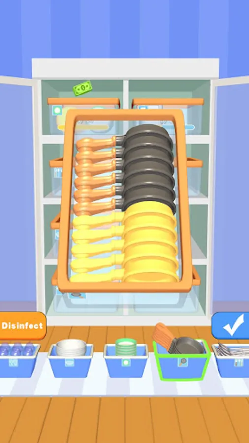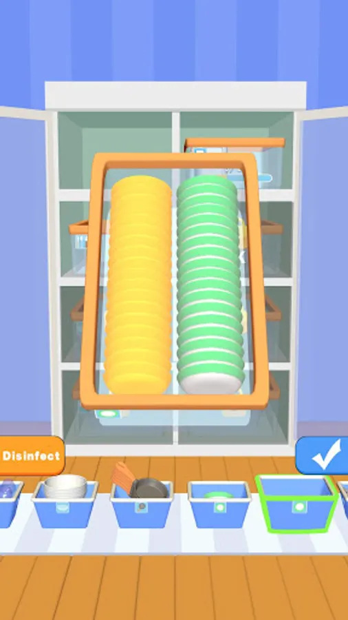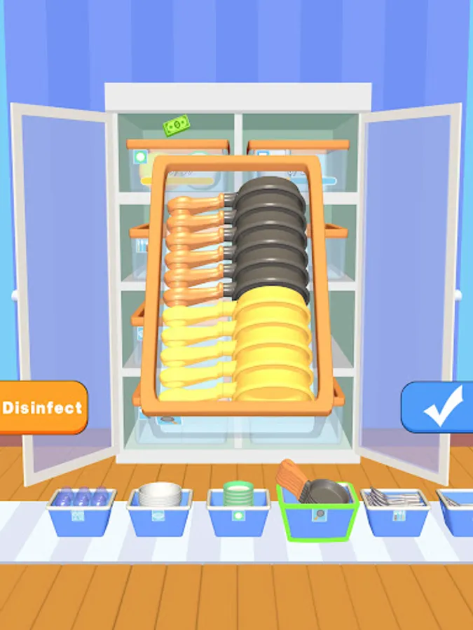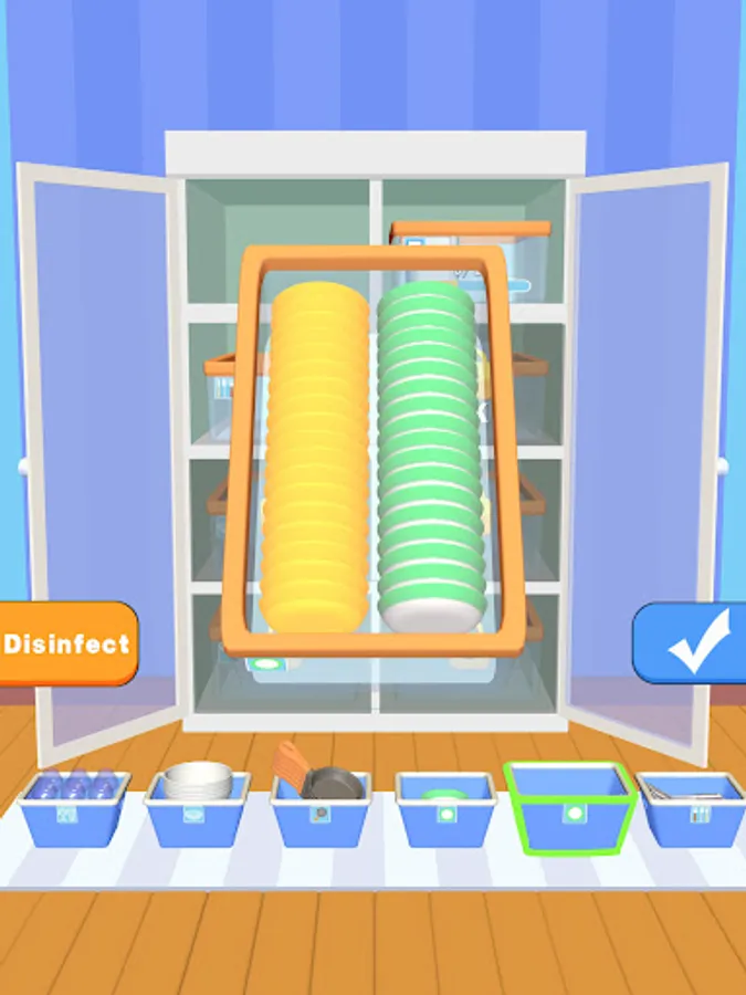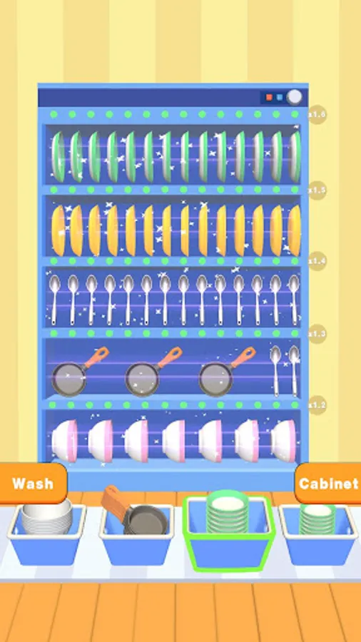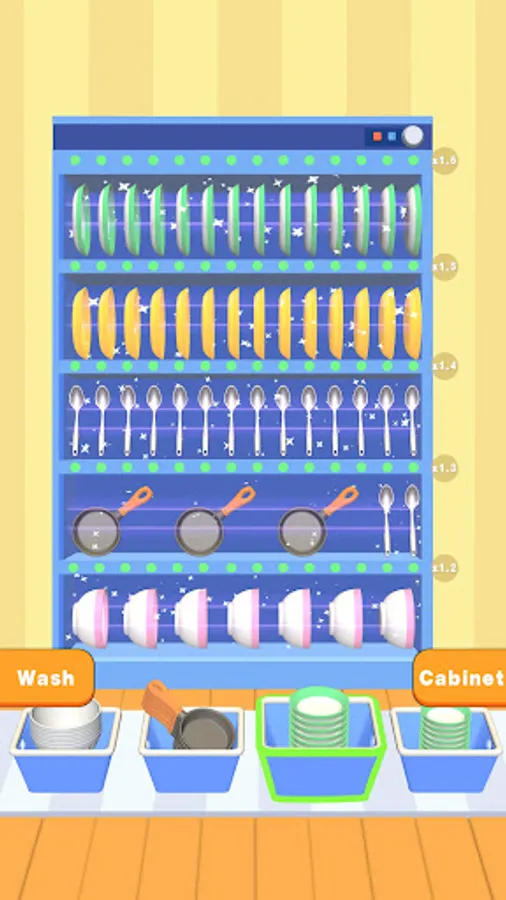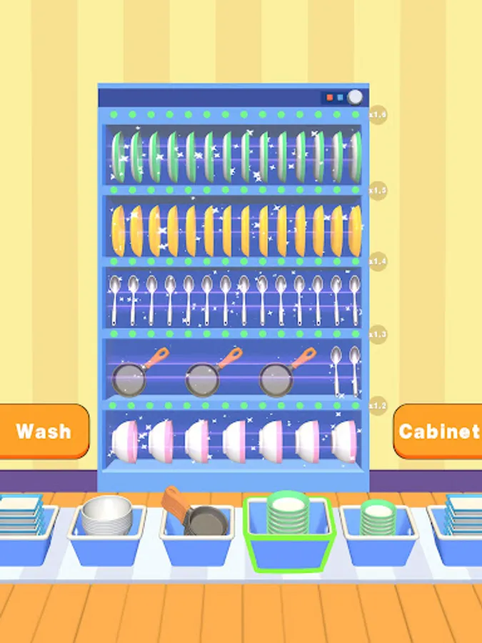 Pick up dirty dishes, wash in the washing machine. Challenge yourself on time management. Keep an eye on time, don’t let any customer get angry at your store.
