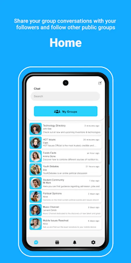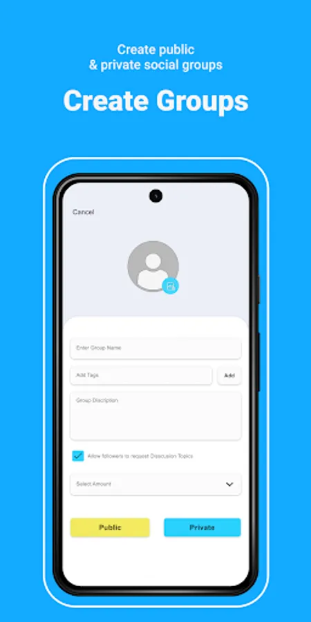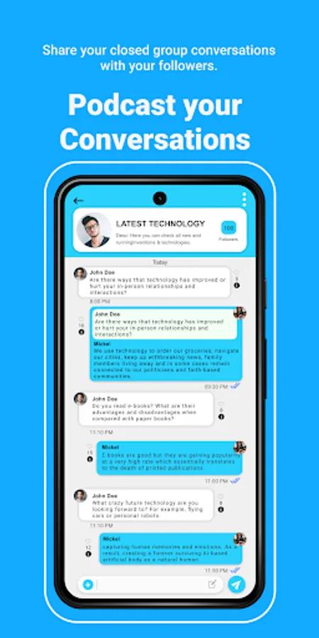 “Public Group” conversations can be followed by an infinite number of the platform’s users but followers cannot intervene in the conversation between the group members unless they request (from the group members) a discussion topic or post a question for a fee that the group admin has set.