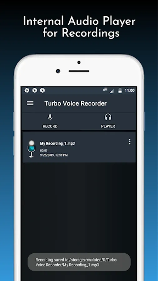 Turbo voice recorder ensures the best quality audio with noise cancellation feature and provide internal audio/mp3 player for your recorded files so you don’t have to leave our best application moreover we provide many others useful and effective features so user love this voice recorder and audio recorder android application.