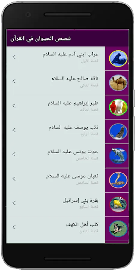 Animal stories in the Holy Quran is an application written application that contains a collection of animal stories in the Holy Qur’an Content: Crow Cain and Abel Naqa Saleh Saleh Tair Ibrahim