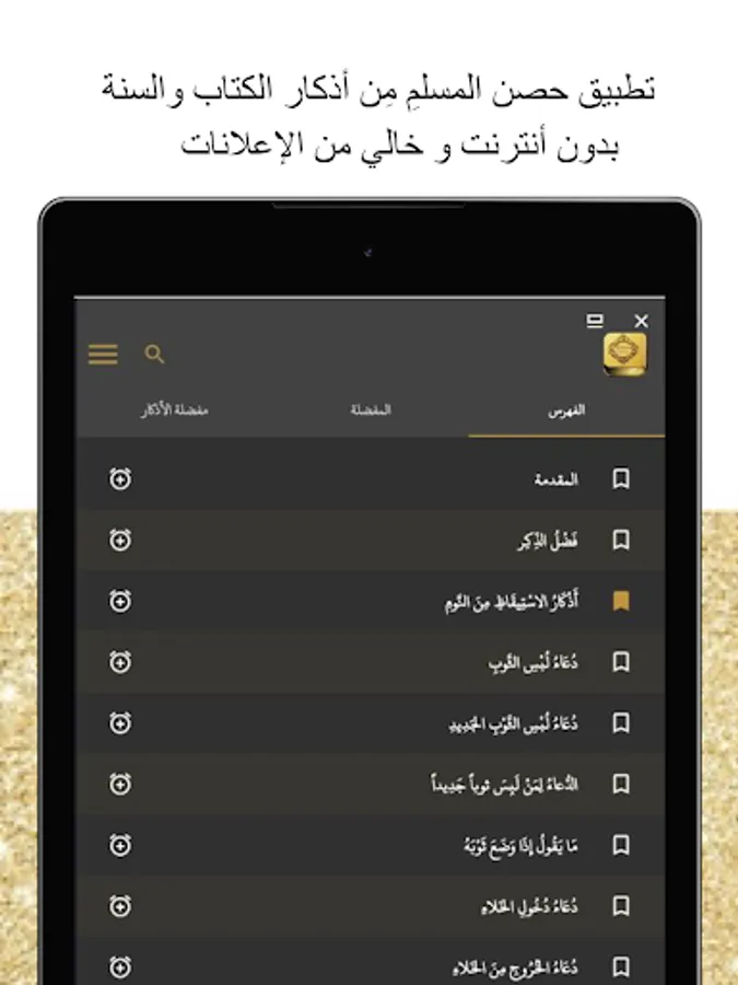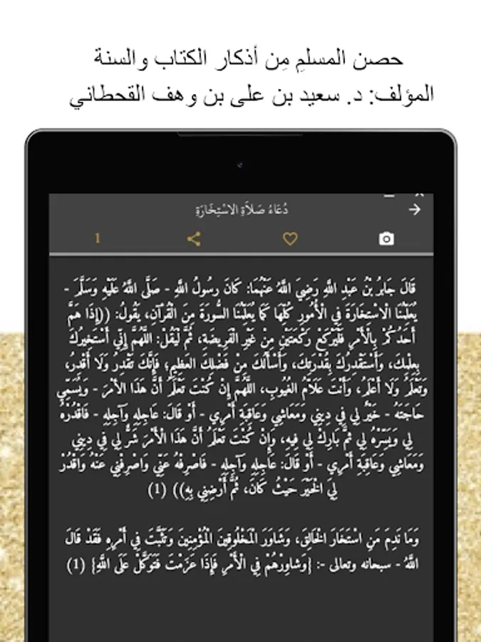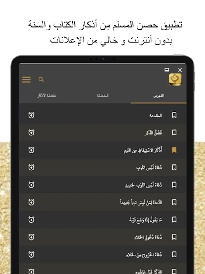 The Fortress of the Muslim application includes remembrances from the Book and the Sunnah of the author: Dr. Saeed bin Ali bin Wahf Al-Qahtani on many dhikr and supplications that are indispensable in our daily life and in our dealings with people, in an easy and simple way.