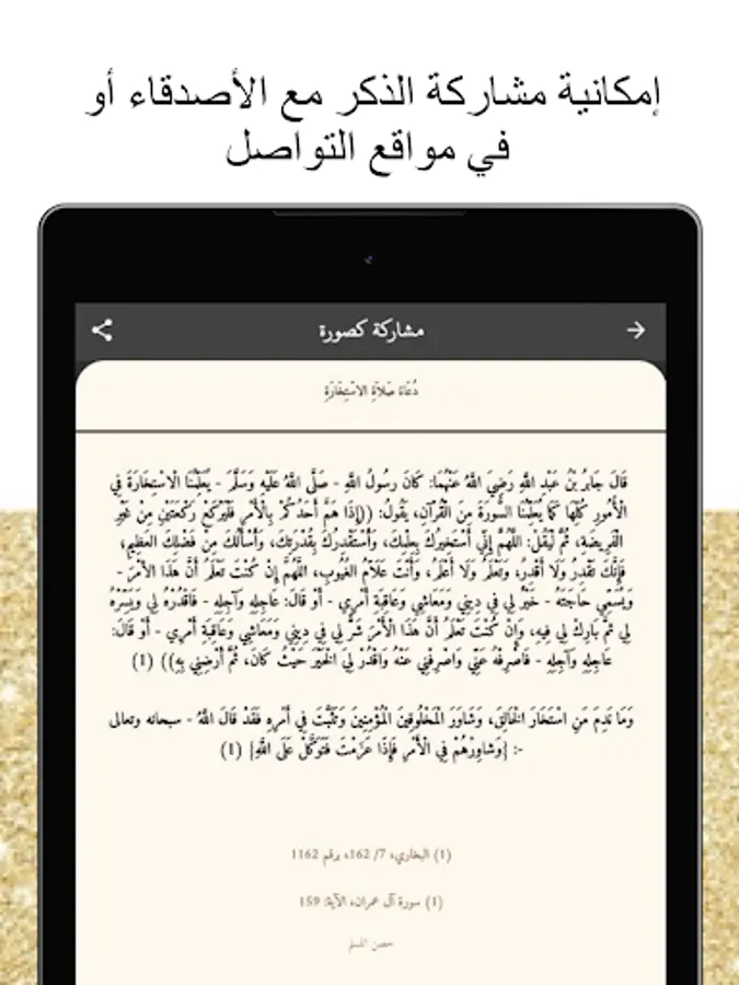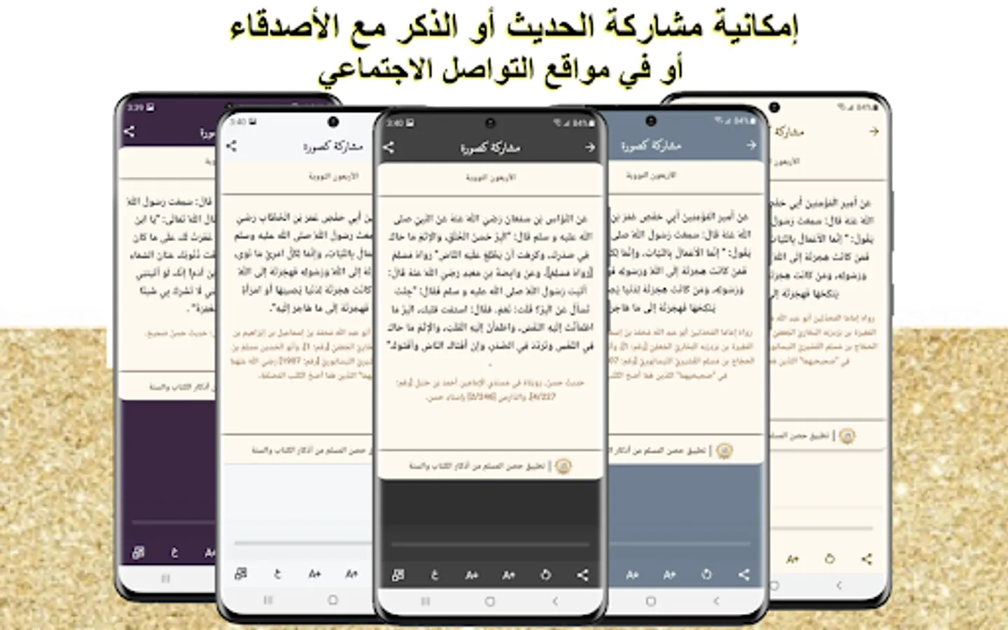 - The ability to share hadith and dhikr with friends or through social networking sites