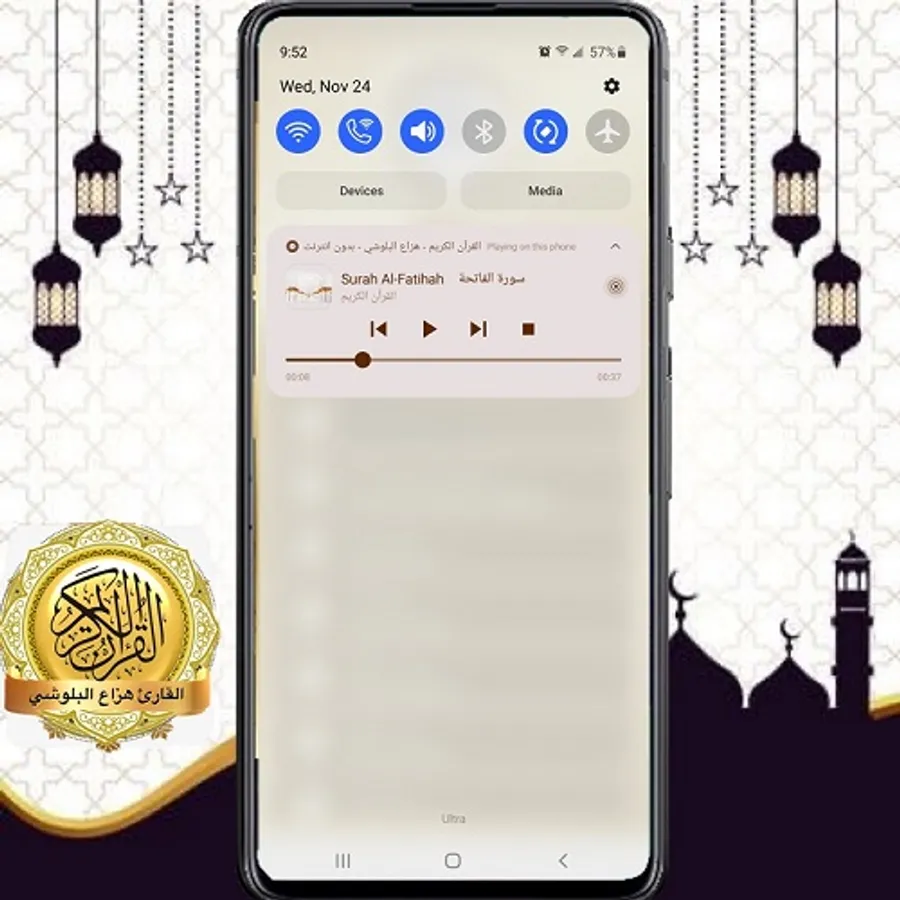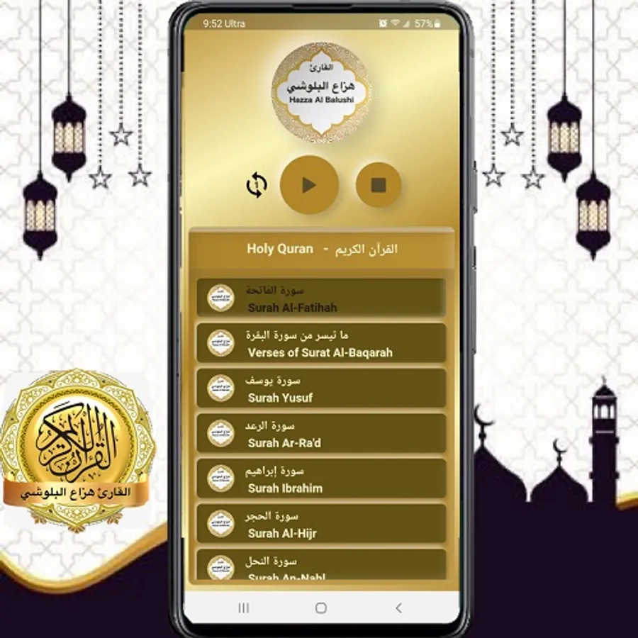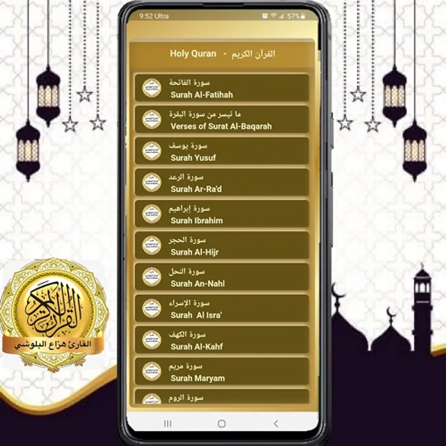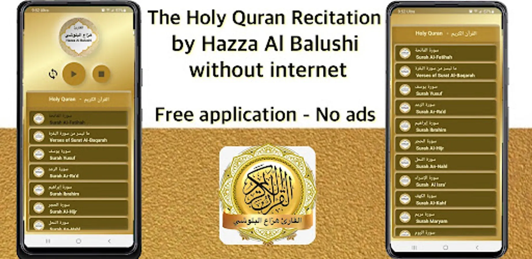 The application of the Holy Qur’an recitation by Hazza Al Balushi , allow you to listen to the Holy Qur’an without Internet from your cell phone or your tablet .