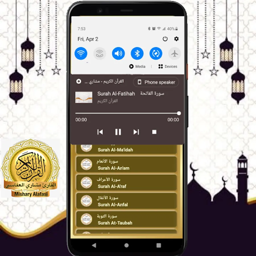 The application of the Noble Qur’an recitation by Mishary Alafasi, allow you to listen to all chapters of the Holy Qur’an without Internet from your cell phone or your tablet and enjoying with the voice of Sheikh Mishary Alafasi that transports you to another world with his distinctive voice.