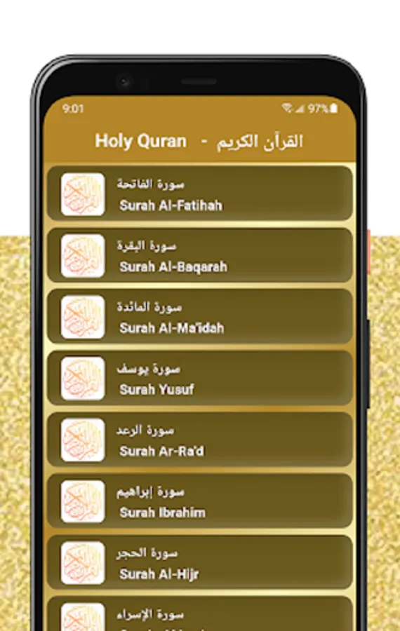 - Visit the Google Play store and search for the application (Islam Sobhi - Quran MP3 )